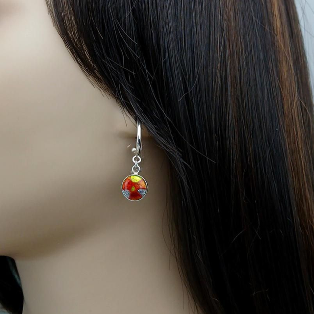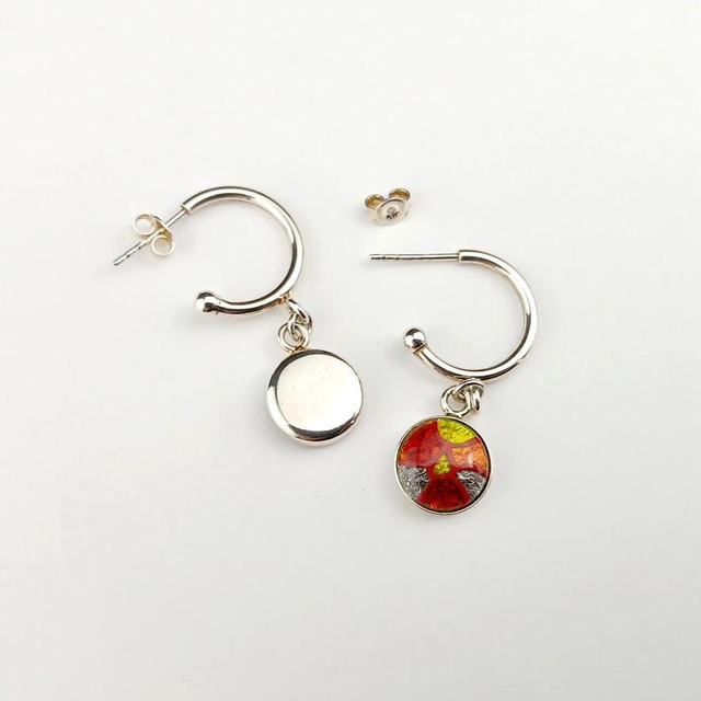 Ces boucles d'oreilles "Anneaux Créoles" sont en émail sur cuivre et sur feuille d'argent.