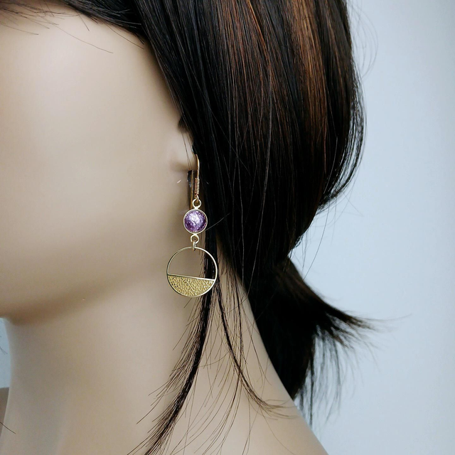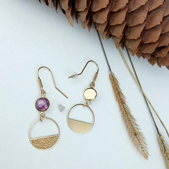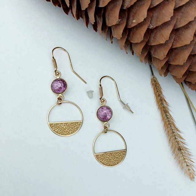 Boucles d'oreilles "Cercles Martelés" en émail et plaqué or