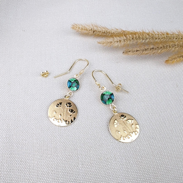 Les émaux de ces boucles d'oreilles vous feront plonger dans des couleurs profondes et lumineuses grâce au scintillement apporté par la feuille d'argent aussi appelée paillon d'argent.