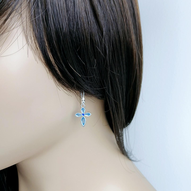 Ces boucles d'oreilles "Croix" sont en émail "Plique à Jour" sur argent.
