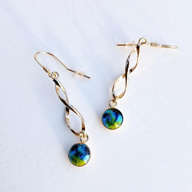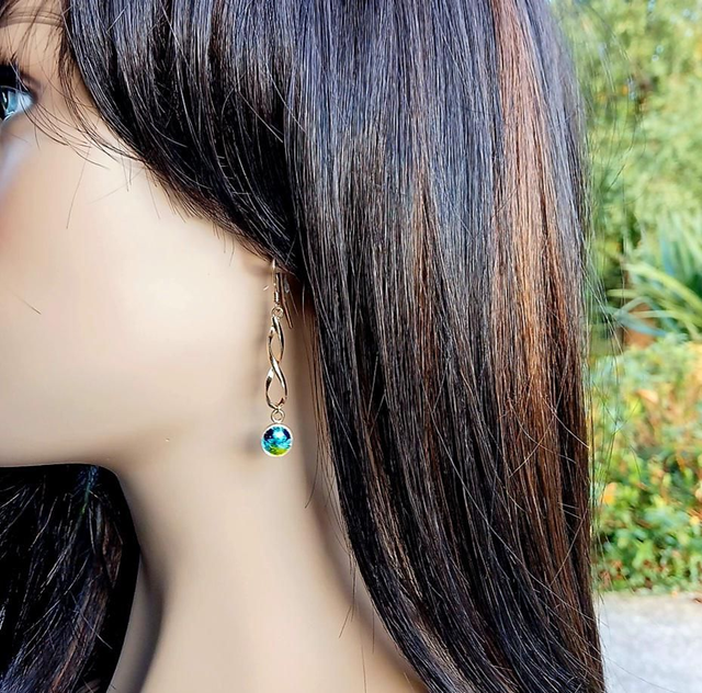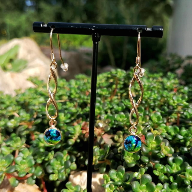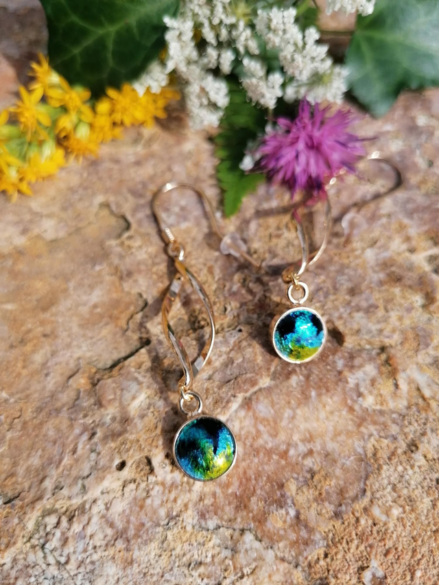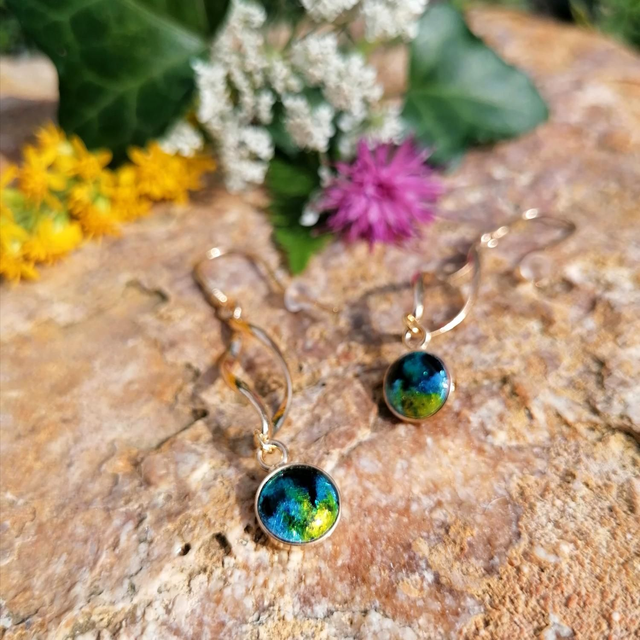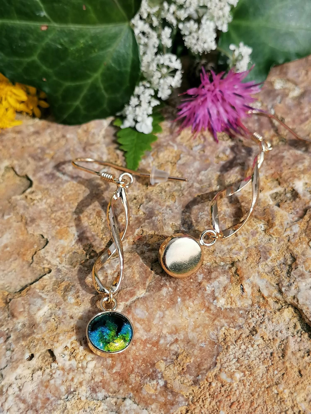 Les émaux de ces boucles d'oreilles vous feront plonger dans des couleurs profondes et lumineuses grâce au scintillement apporté par la feuille d'argent aussi appelé paillon d'argent.