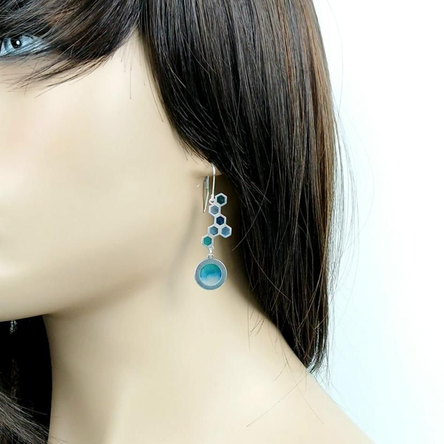 Boucles d'oreilles "Nid d'abeilles" en émail plique à jour sur argent