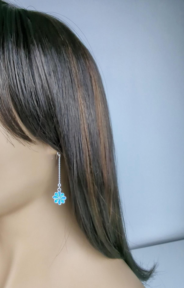 Boucles d'oreilles pendantes Marguerite sur chaîne.