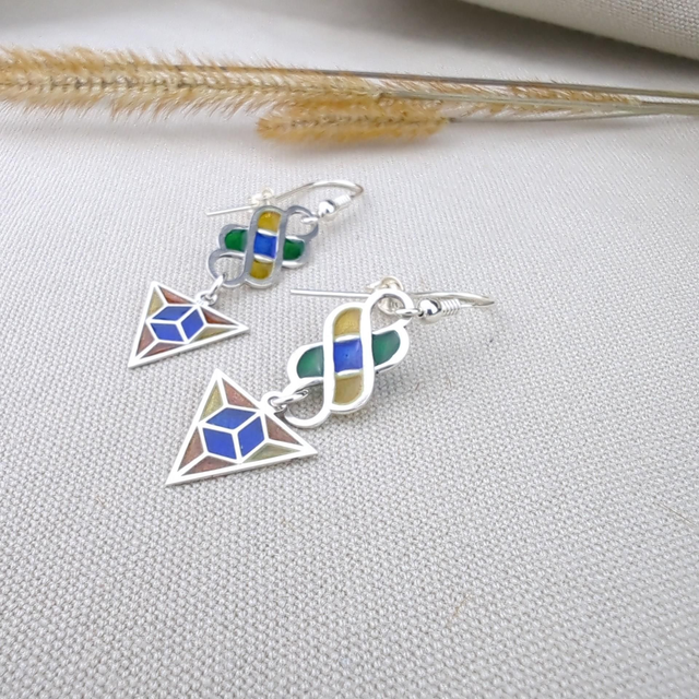La particularité de ces boucles d'oreilles c'est que les couleurs des émaux prendront vie sous les rayons du soleil changeants comme des vitraux.