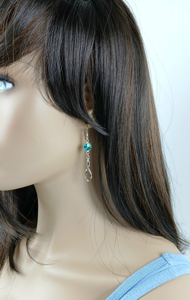 Boucles d'oreilles '' Spirales d'Argent '' en émail turquoise
