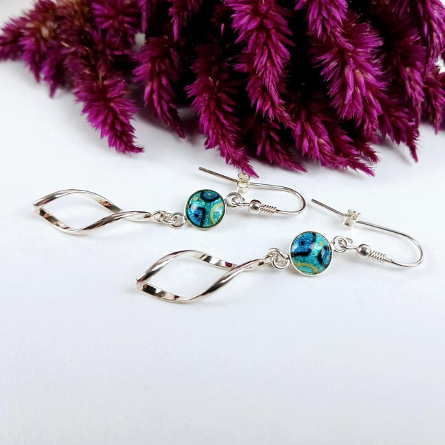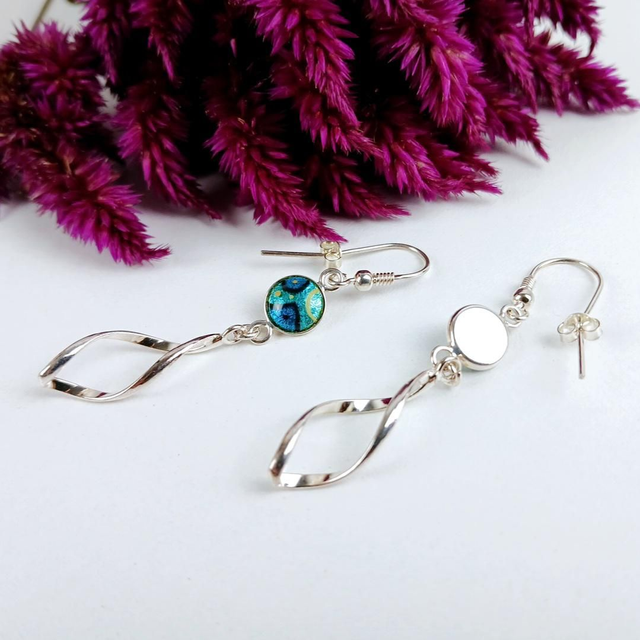 Les émaux de ces boucles d'oreilles scintilleront selon la lumière grâce à la feuille d'argent.