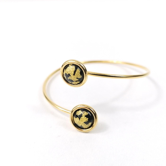 Ce bracelet jonc est en plaqué Or associés à de 2 émaux sur cuivre agrémentés de feuille d' Or 24 carats.