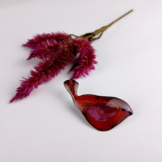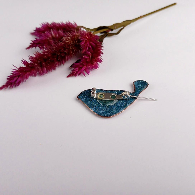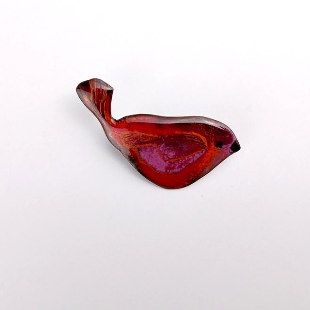 Cette broche est en émail sur cuivre en forme d'oiseau. Elle est très originale et ne manquera pas de faire de l'effet que ce soit sur un vêtement, un sac ou un accessoire de mode.