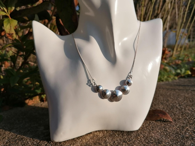 Ce collier en Argent "5 perles" est composé de cinq émaux sur feuilles d'argent.