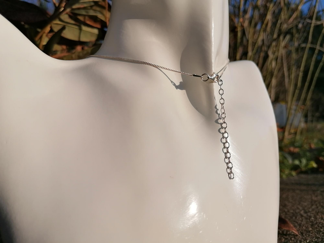 La chaîne gourmette et l'ensemble des montures du collier sont en Argent 925 de Fabrication Européenne.