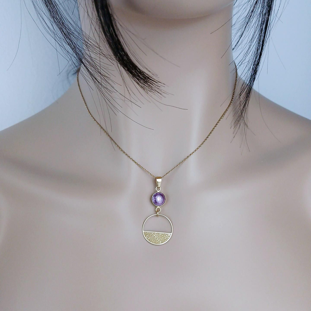 La chaîne, le Cercle ajouré et martelé et l'ensemble des montures sont en Argent 925 Plaqué Or 18 carats de fabrication européenne.