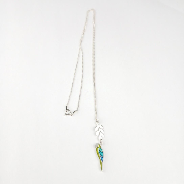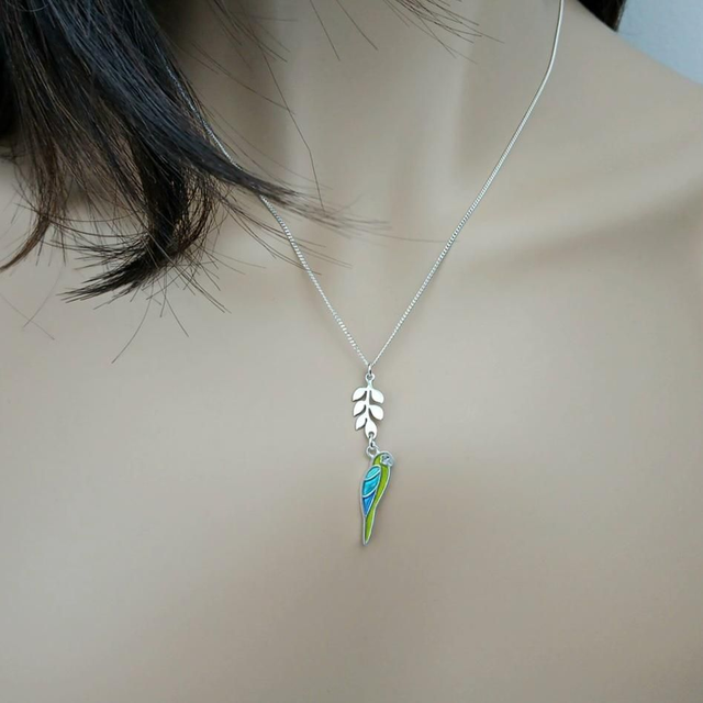L'ensemble des montures, la feuille, le perroquet et la chaîne de type "gourmette" sont en Argent 925 de Fabrication Européenne.