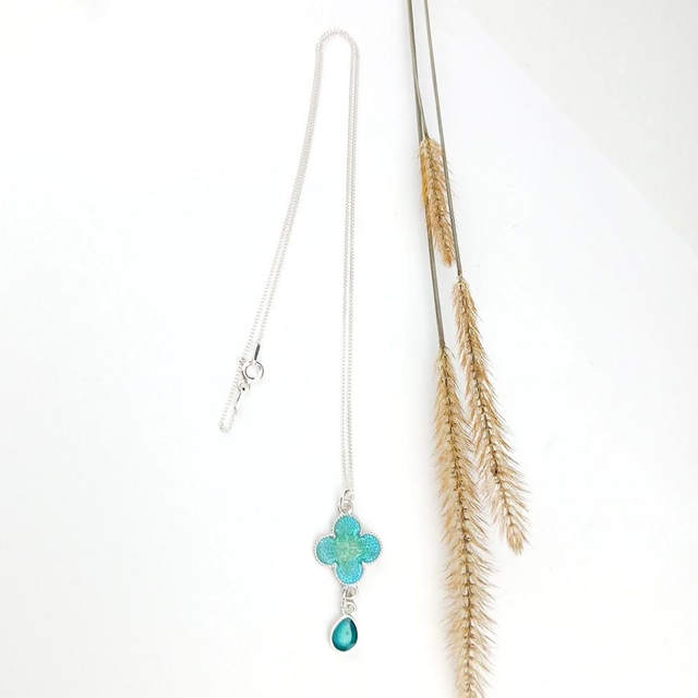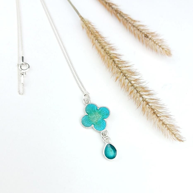 Ce collier "Trèfle" est en émail champlevé sur argent.