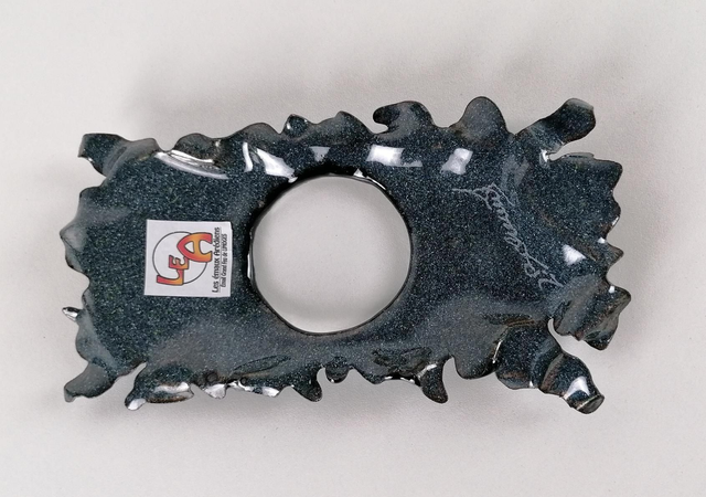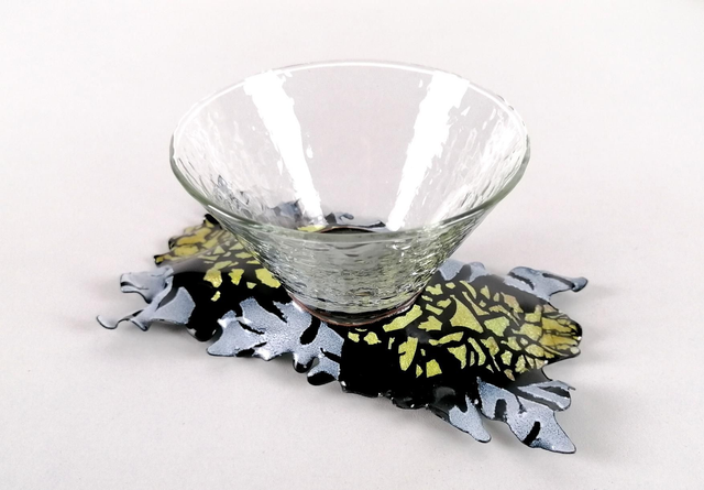 Pièce unique en émail sur cuivre sublimée de fines feuilles d'argent. Cette pièce de forme conviendra parfaitement pour apporter une touche chic à votre intérieur.
