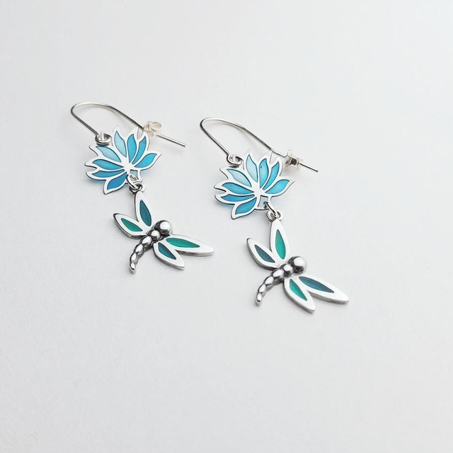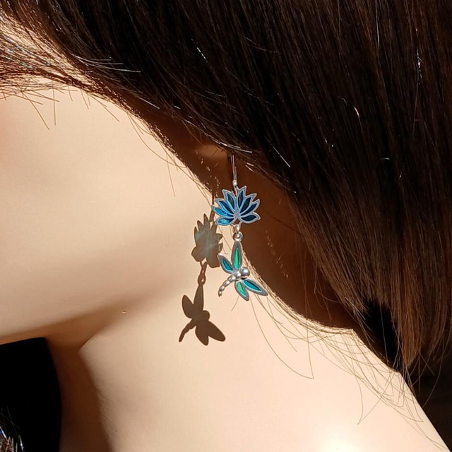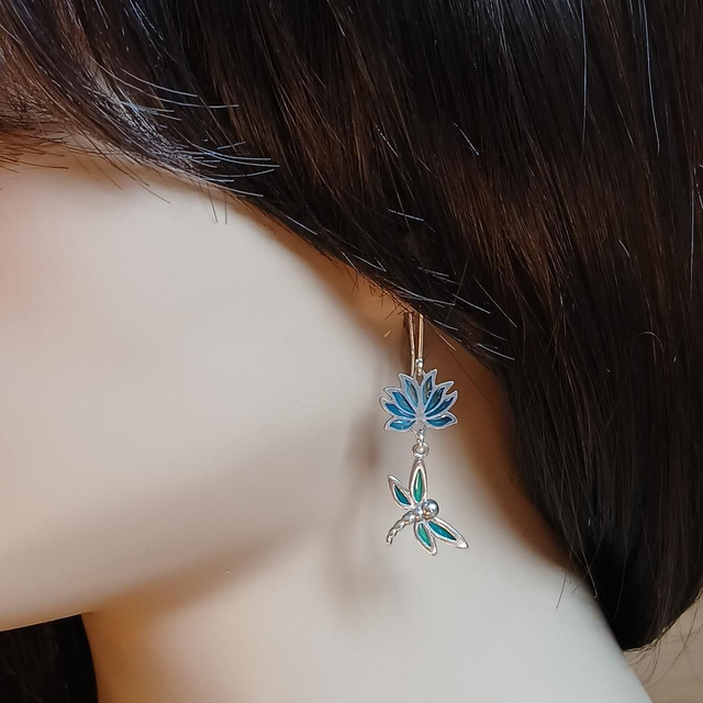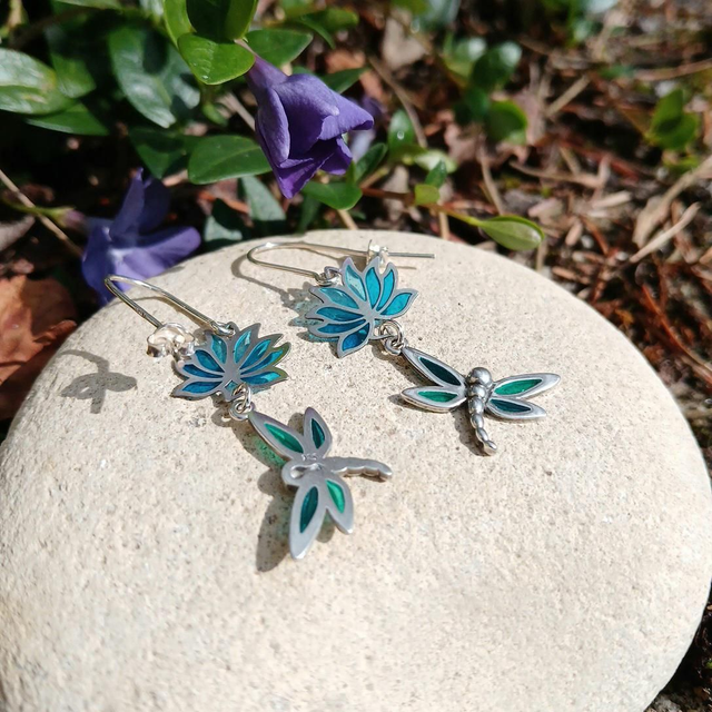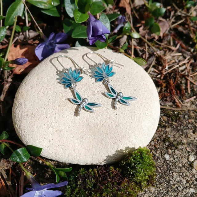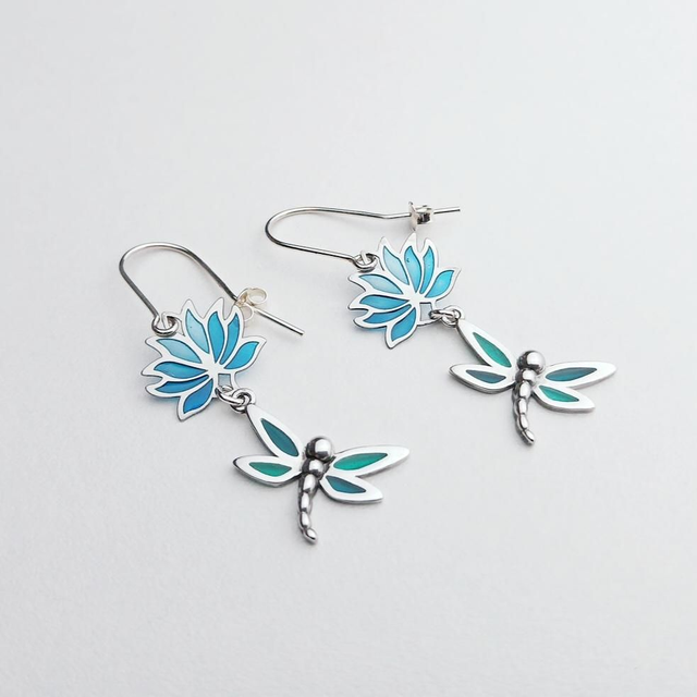 Les libellules - Boucles d'oreilles en émail plique à jour sur argent