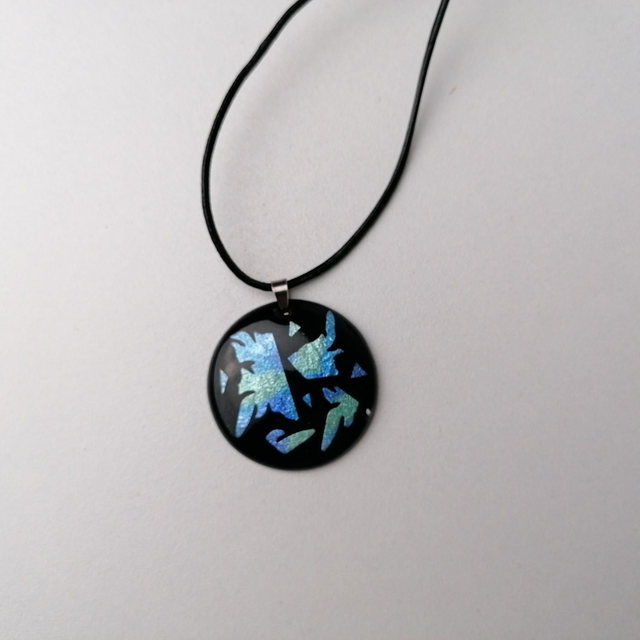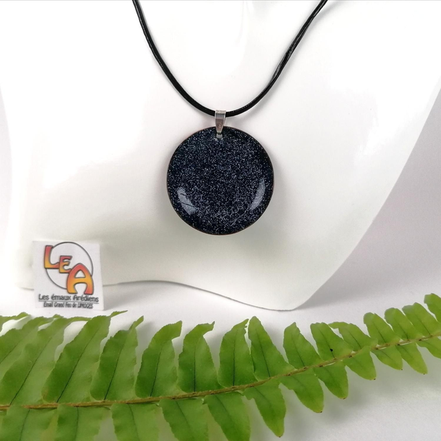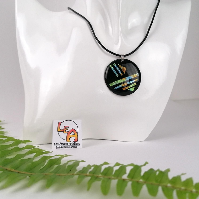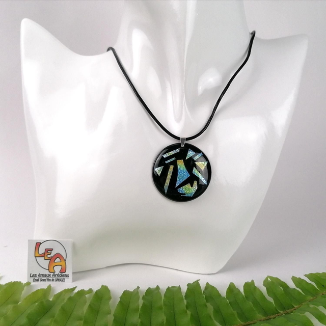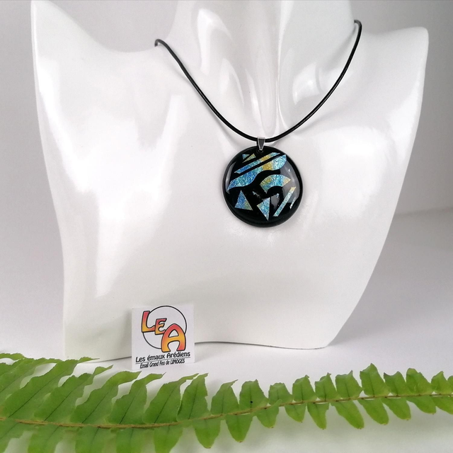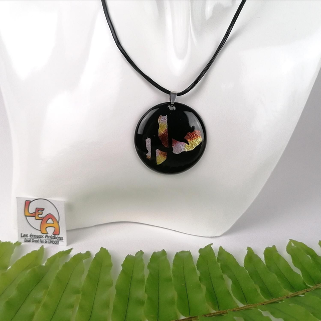 Ce pendentif est en émail sur cuivre sublimé de feuille d'argent. Il sera parfait pour apporter une touche de chic à votre tenue.