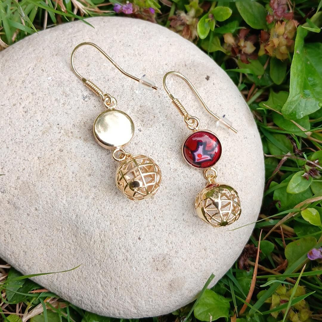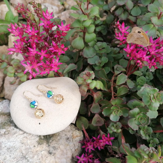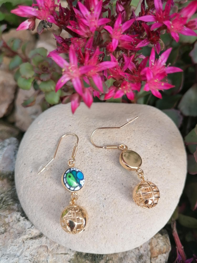 '' Planète Terre '' , Boucles d'oreilles en émail, Plaqué Or 18 Carats