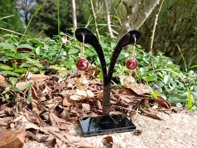 Les montures, les planètes et les crochets sont en argent 925 plaqué à l'Or fin 18 carats de fabrication européenne. Des boutons poussoirs en silicone transparent vous sont fournis.