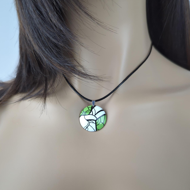 '' Pop Art '' - Pendentif en émail, Vert Pomme